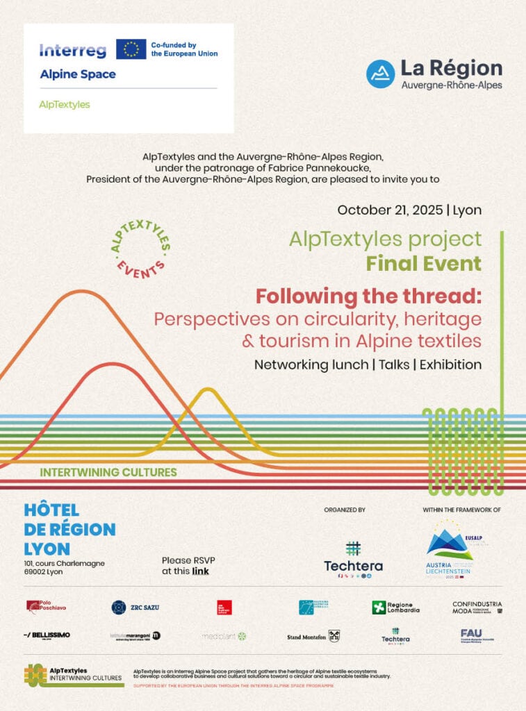 Organized by project partner Robin Oddon of TECHTERA, this event marks not only the conclusion of the AlpTextyles project but the beginning of a broader journey. Over the past three years, we have laid the foundations for helping make textile practices and lifestyles more sustainable in the Alpine region — many of which are already being applied and will continue to live and evolve beyond the project itself.