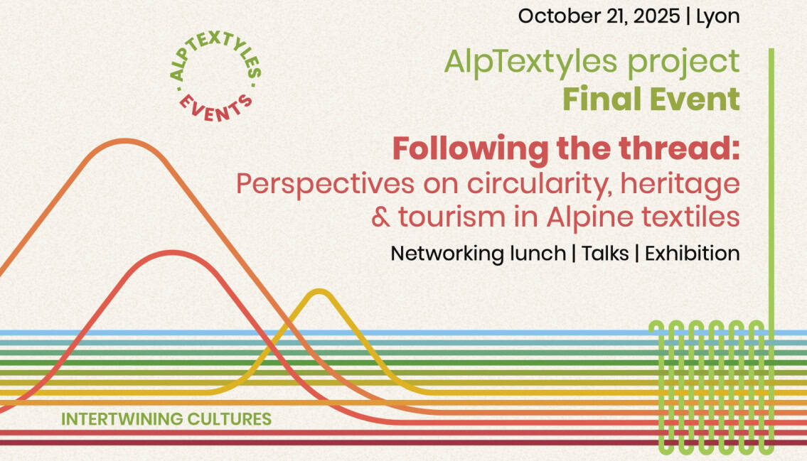 The program includes roundtables with project partners and new allies, followed by our AlpTextyles Living Exhibition in its complete display, with a new banner highlighting pilot results, the Safeguarding Toolkits for heritage communities, and the Orientation Guide for SMEs. We will also present our Metaverse and MOOC, a wide array of objects and fashion items crafted with natural dyes and Alpine fabrics, new videos, and much more!