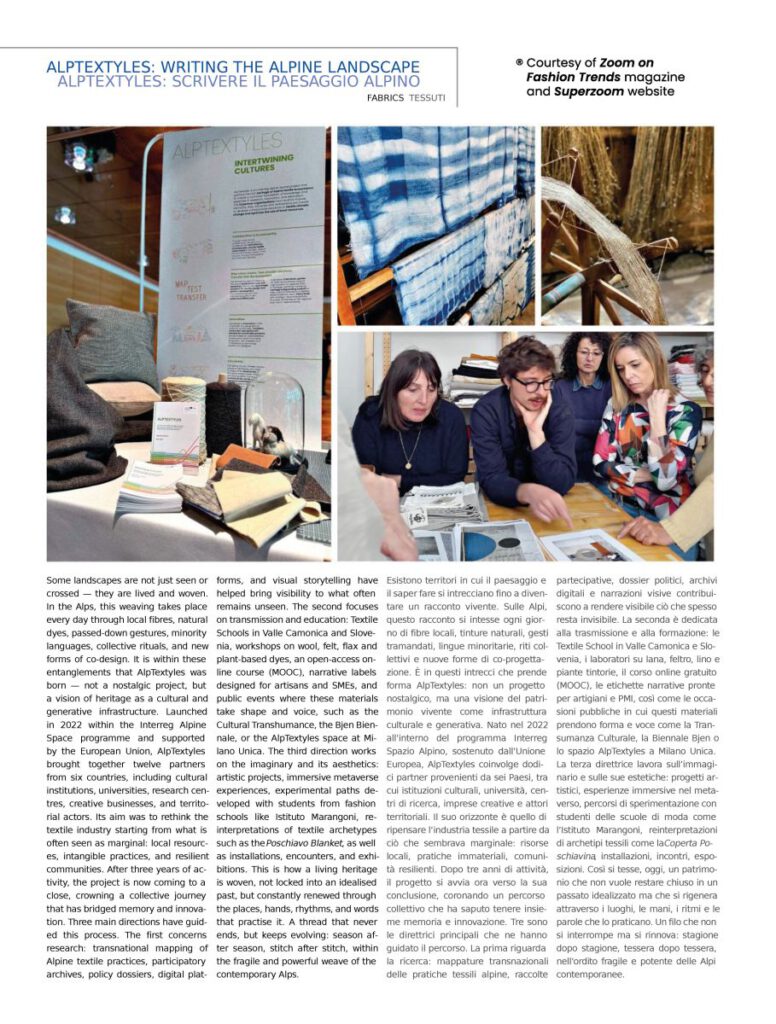 We’re delighted to share that #AlpTextyles has been featured once again with a full article in Zoom On Fashion Trends and Nuova Libra Editrice’s Superzoom, issue #77 page 21 — you can read it here.