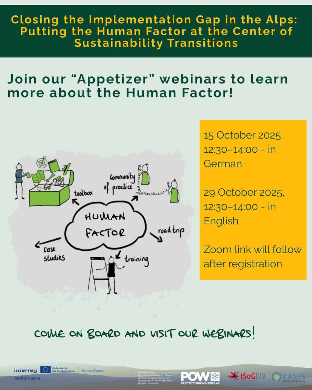 You cannot wait to learn more about the tools and trainings that are being developed as part of the HumanFactor project? Come join us for our “Appetizer” webinars!