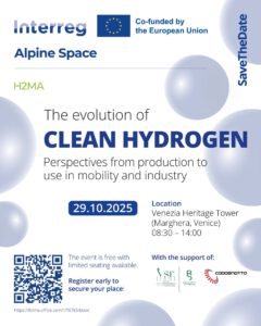 The H2MA project is reaching its grand finale! On 29 October 2025, we invite you to the Venezia Heritage Tower in Marghera, Venice, for an international gathering on the evolution and future applications of clean hydrogen across the Alpine region.