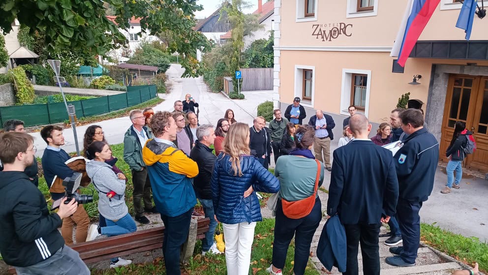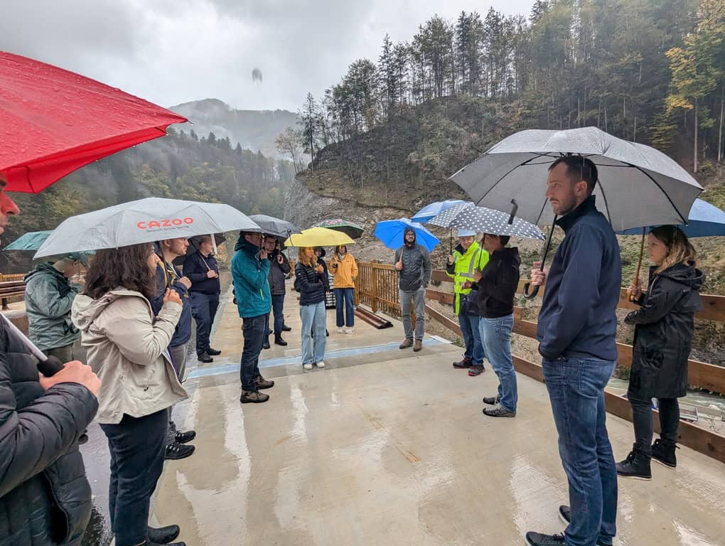 The partner meeting was enriched with two field visits. On the first day of the meeting, we visited the flood-prone area of Škofja Loka. The Civil Protection commander of the Škofja Loka municipality presented the history of floods, the challenging torrential nature of the watercourses in the area, various aspects of last year’s floods, and the role of Civil Protection in such events.