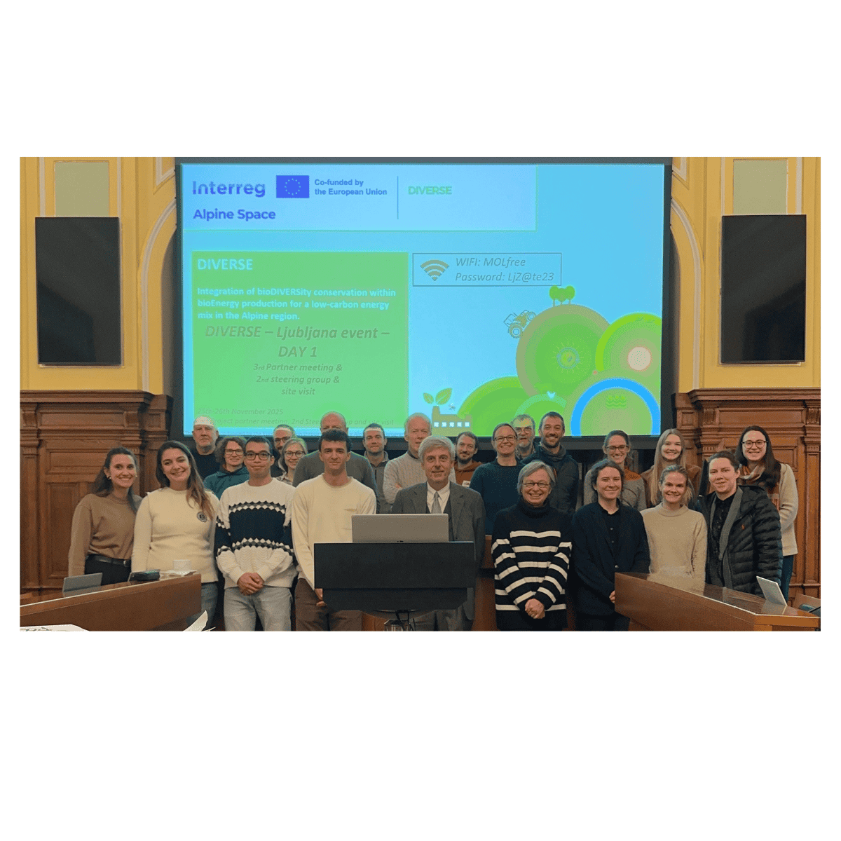 The partners of the DIVERSE project convened in Ljubljana on 25–26 February 2025 for the third transnational meeting, hosted by the Slovenian project team. The two-day event combined knowledge exchange, strategic planning, and a field visit that shed light on the intricate relationship between land use, biodiversity, and sustainable bioenergy pathways in the Alpine Space.