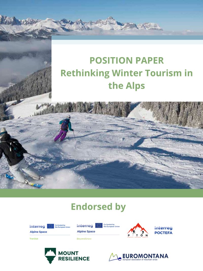 One of the main outputs of the TranStat project (Transitions to Sustainable Ski Tourism in the Alps of Tomorrow) is the publication of the Policy Paper “Rethinking Winter Tourism in the Alps”, which synthesizes the project’s key findings and policy recommendations for a sustainable transition of Alpine winter tourism. The document provides concrete guidance for policymakers at European, Alpine, and national levels, aiming to support mountain resorts in adapting to climate change while fostering economic diversification, social cohesion, and environmental resilience.