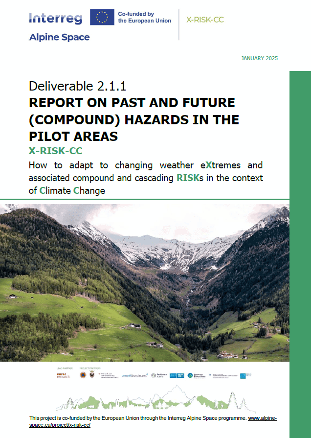 The report provides an in-depth analysis of historical and projected climate-related hazards in Alpine pilot areas as part of the X-RISK-CC project. It introduces the concept of sequential impact chains to illustrate how extreme weather events, such as droughts, floods, and storms, can trigger complex, compound, and cascading effects. Through case studies from Slovenia, Germany, Austria, Italy, and France, the report highlights region-specific hazard dynamics and their implications for local communities. The findings support risk managers and policymakers in identifying evolving vulnerabilities and planning climate adaptation strategies tailored to Alpine environments.