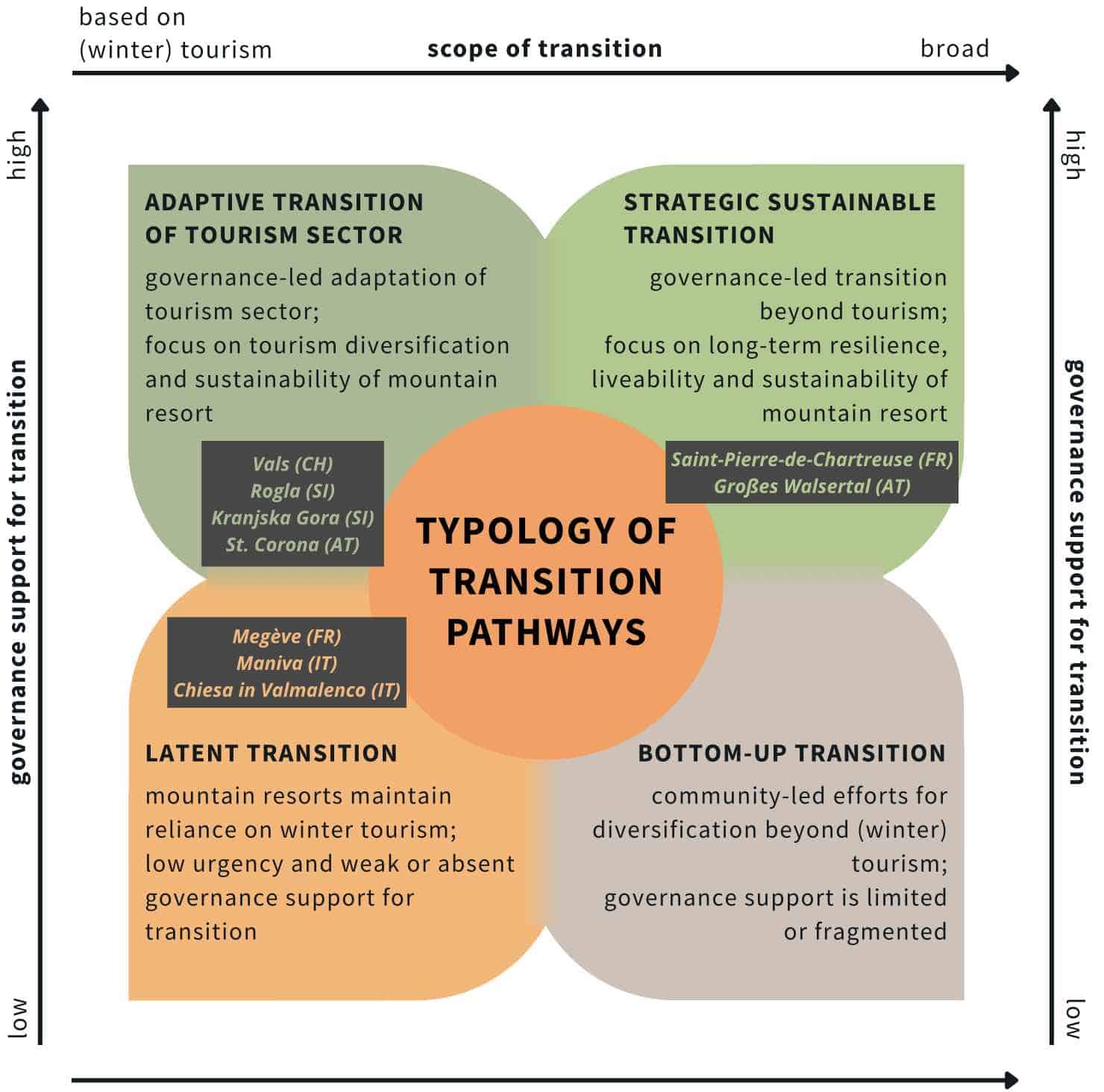 The typology doesn’t offer one-size-fits-all solutions. Instead, it reflects the diversity of Alpine contexts, helping mountain resorts rethink their future development orientations, appropriate governance approaches and build resilient, place-based futures.