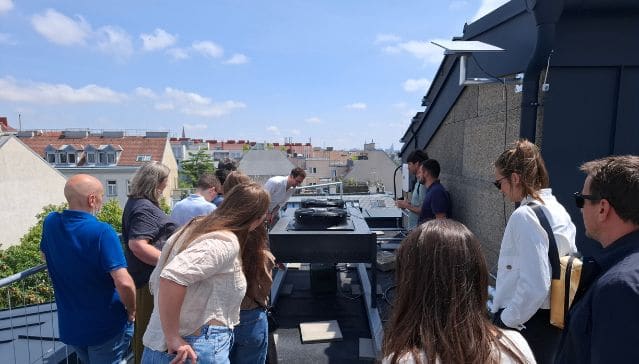 What makes this site unique is that the office itself serves as a living showcase for clients and visiting groups. Demonstrations of the technology implemented are accessible throughout the building, including rooftop installations and the courtyard. The office is designed not only as a workspace but also as an educational platform where visitors can see practical examples of decarbonization measures in action.