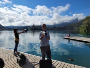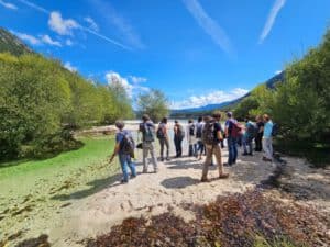 The next day, PPs took part in a field trip to two iconic Slovenian lakes – Lake Bled (DiMark key lake) and Lake Bohinj. The day began with a walk along the shores of Lake Bled, stopping at the inflow Mišca, the ARSO boathouse, and the outflow Jezernica. Experts from the Slovenian Environmental Agency (ARSO) shared updates on lake monitoring and water conditions, while colleagues from the National Research Council (CNR) demonstrated advanced spectroradiometric measurement techniques.